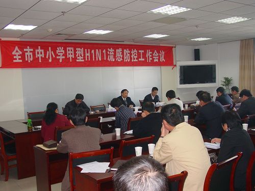 为及时贯彻落实2009年11月3日晚省政府召开的甲型H1N1流感防控工作电视电话会议精神,扎实有效做好全市学校甲型H1N1流感防控工作,2009年11月6日上午,市教育局再次召开全市中小学甲型H1N1流感防控工作紧急会议。