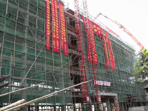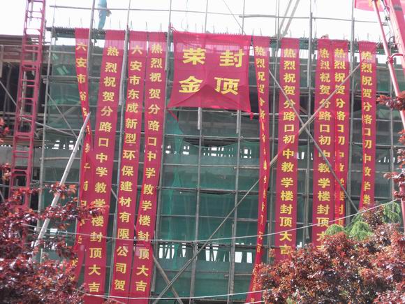 2010年4 月28日上午9:30,随着最后一方混凝土的浇铸完成,我区首批14个校安工程之一——分路口镇初中教学楼工程完成主体封顶,进入内部装修。