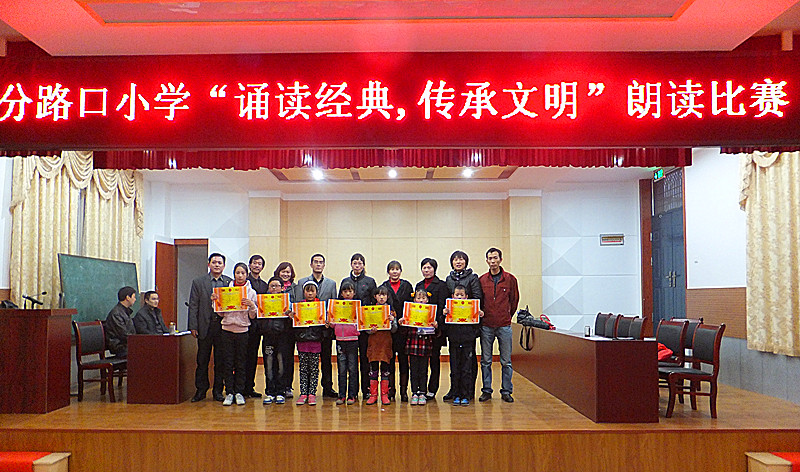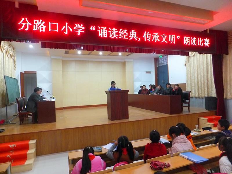 为了培养学生广泛的阅读兴趣,展示学生的语文基本功,及时检阅学校建设“书香校园”的阶段性成果,2012年11月9日下午,分路口小学举行了“诵读经典,传承文明”第一届小学生朗读比赛。