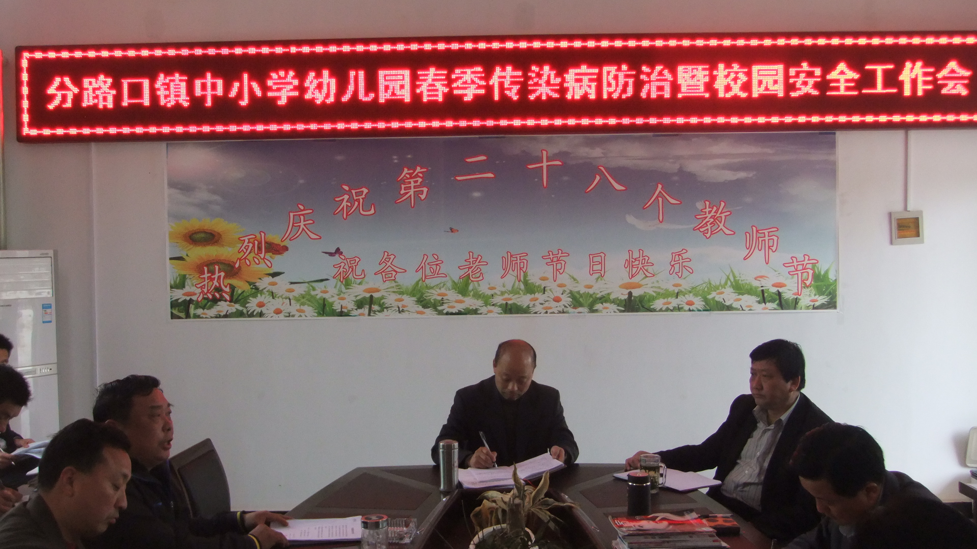 4月9号下午,分路口镇中心学校召开中小学校长、幼儿园园长会,布置安排春季传染病防控以及校园安全工作。