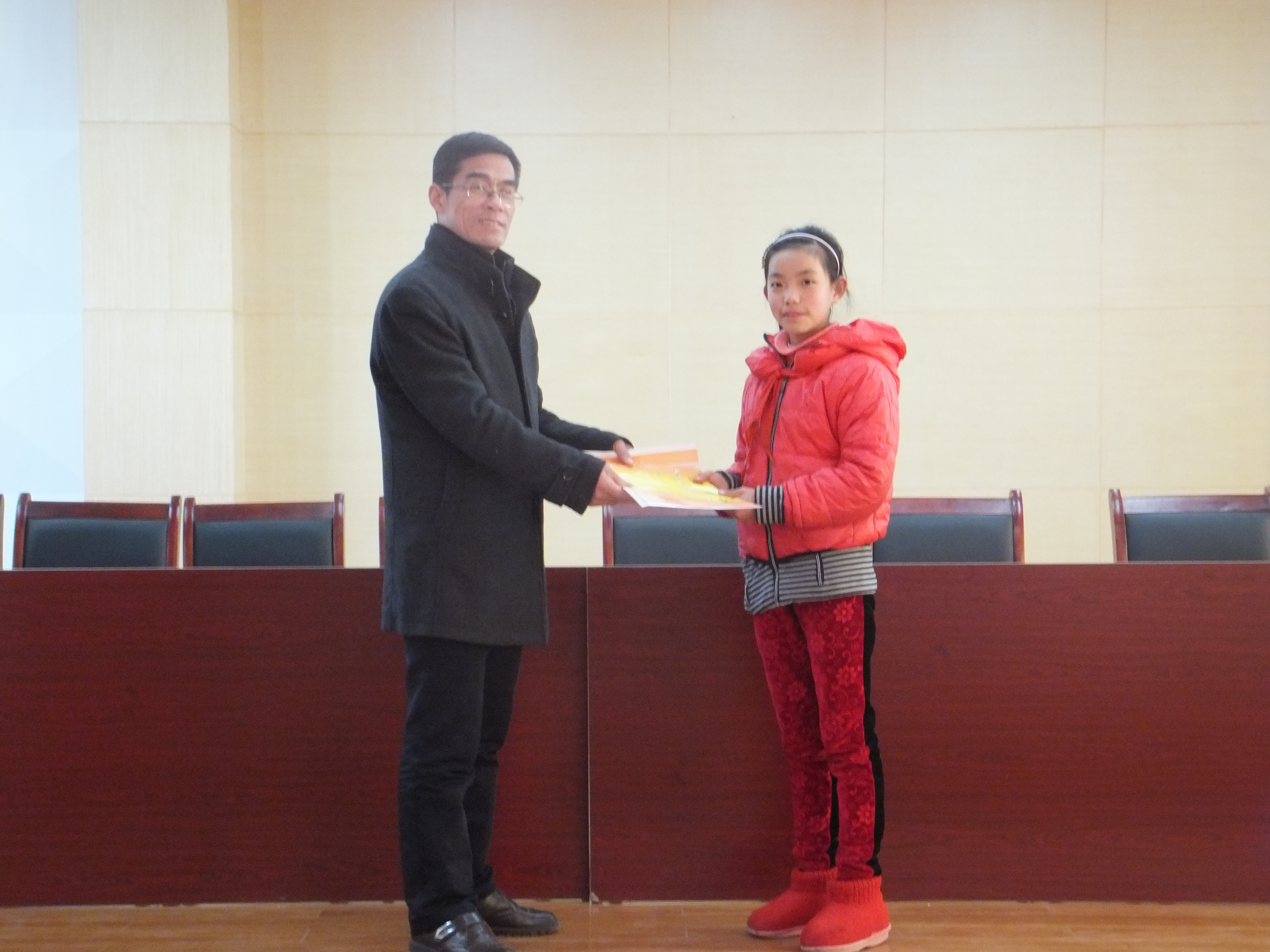 在12月30日的评选中,最终有36幅优秀作品分别获得了一、二、三等奖。12月31日,在分路口小学大礼堂,毛德清和翁维钰两位副校长为获奖学生颁发了奖品和奖状。
