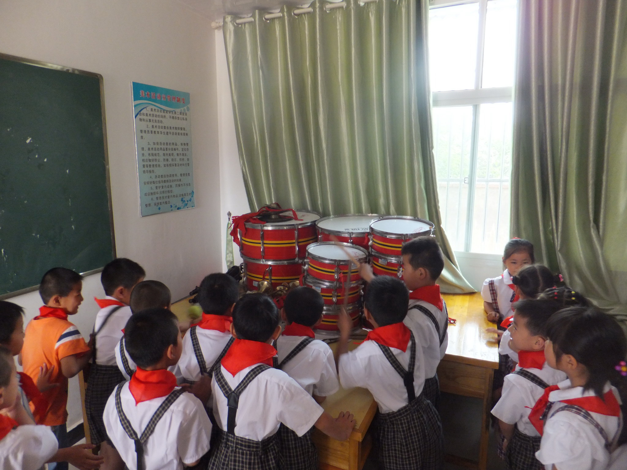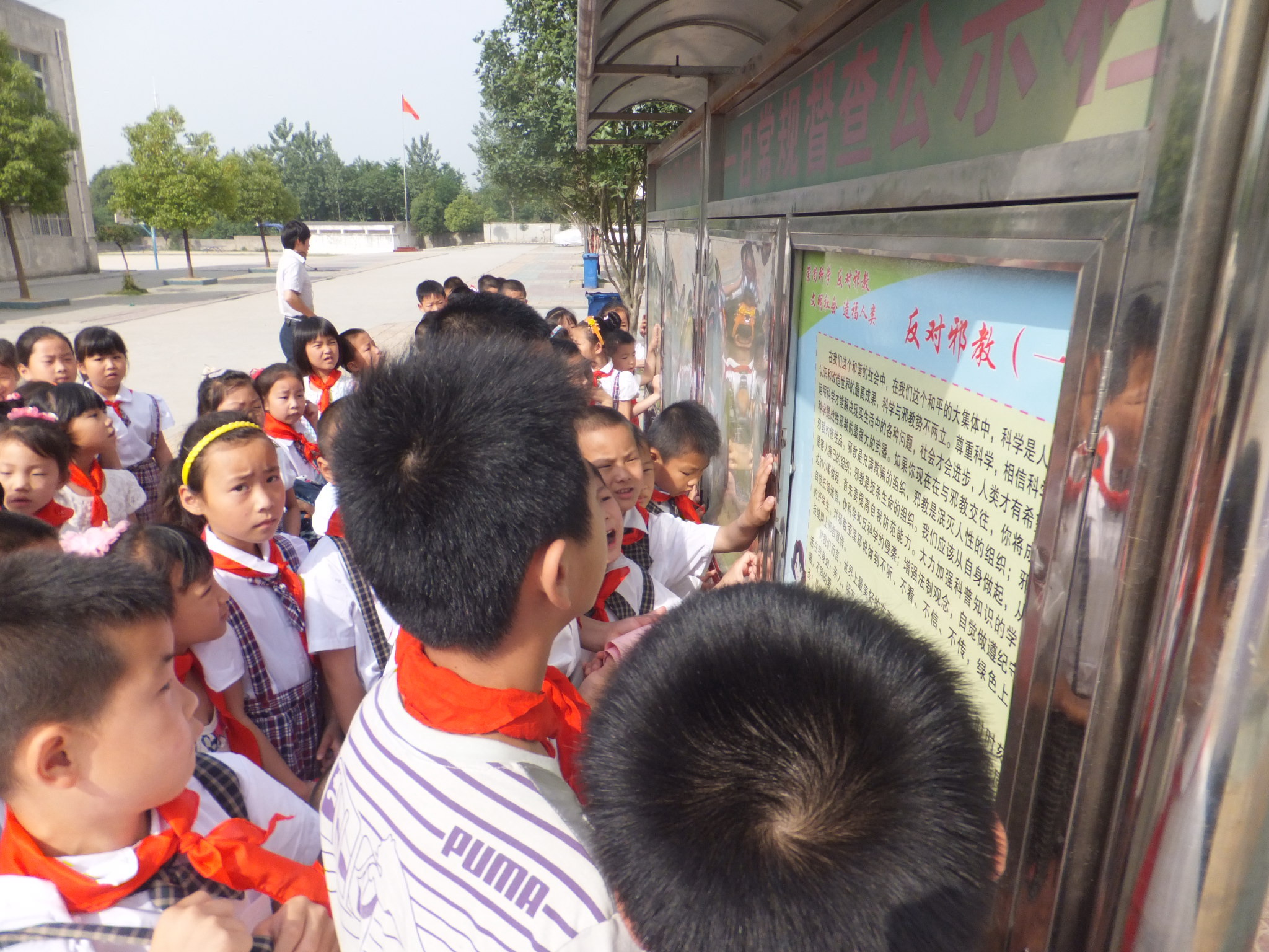室内活动结束后,新队员们在老队员们的带领下参观了少先队活动室和“崇尚科学,反对邪教”宣传栏。