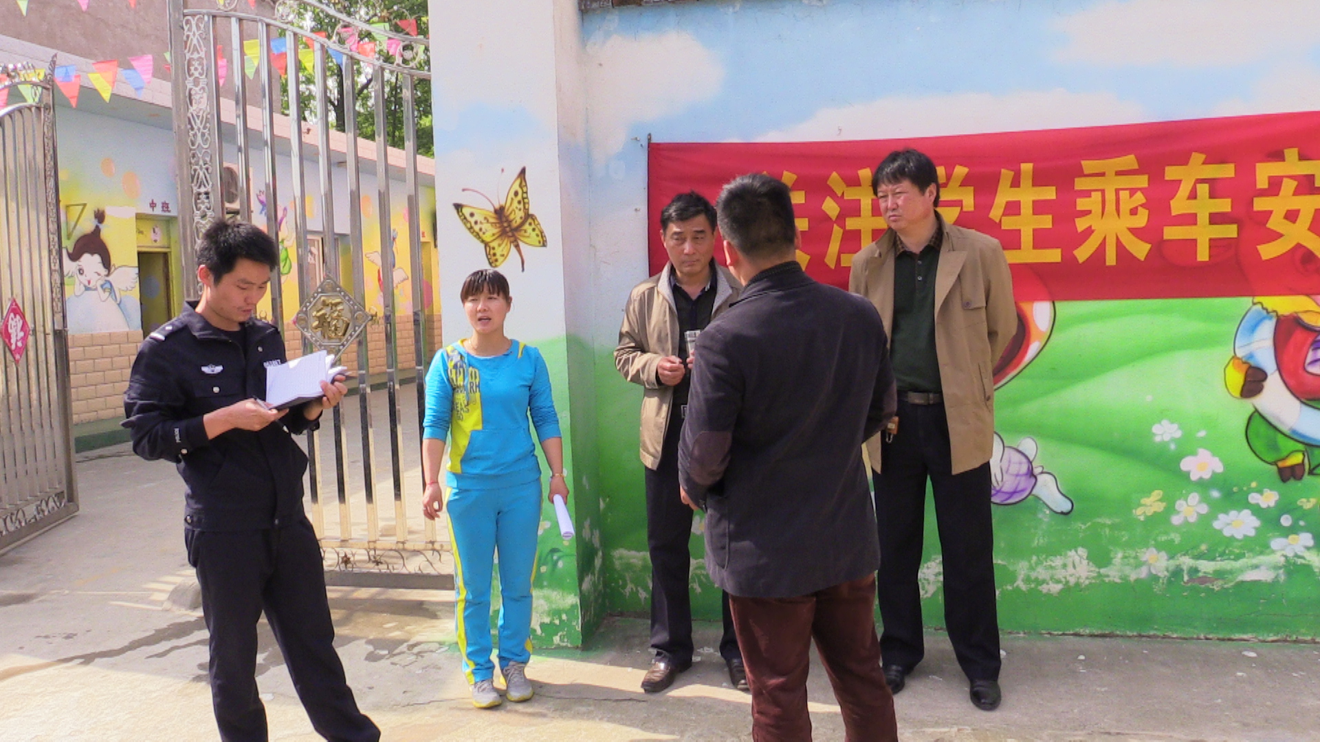 紧接着领导组开展了第一阶段的工作内容:4月22号上午,有分路口镇人大主任孟庆文同志带队,有政府、镇安委会、派出所、交警队、交通、中心学校等多部门参加的联合督查组,深入到辖区内所有幼儿园和部分学校,开展校车专项整治工作。督查组每到一个幼儿园首先宣传此次专项整治工作的精神内容,然后对照《校车管理条例》,逐辆车进行排查,在排查过程中,指出不足和存在的问题,并逐一记载存档。