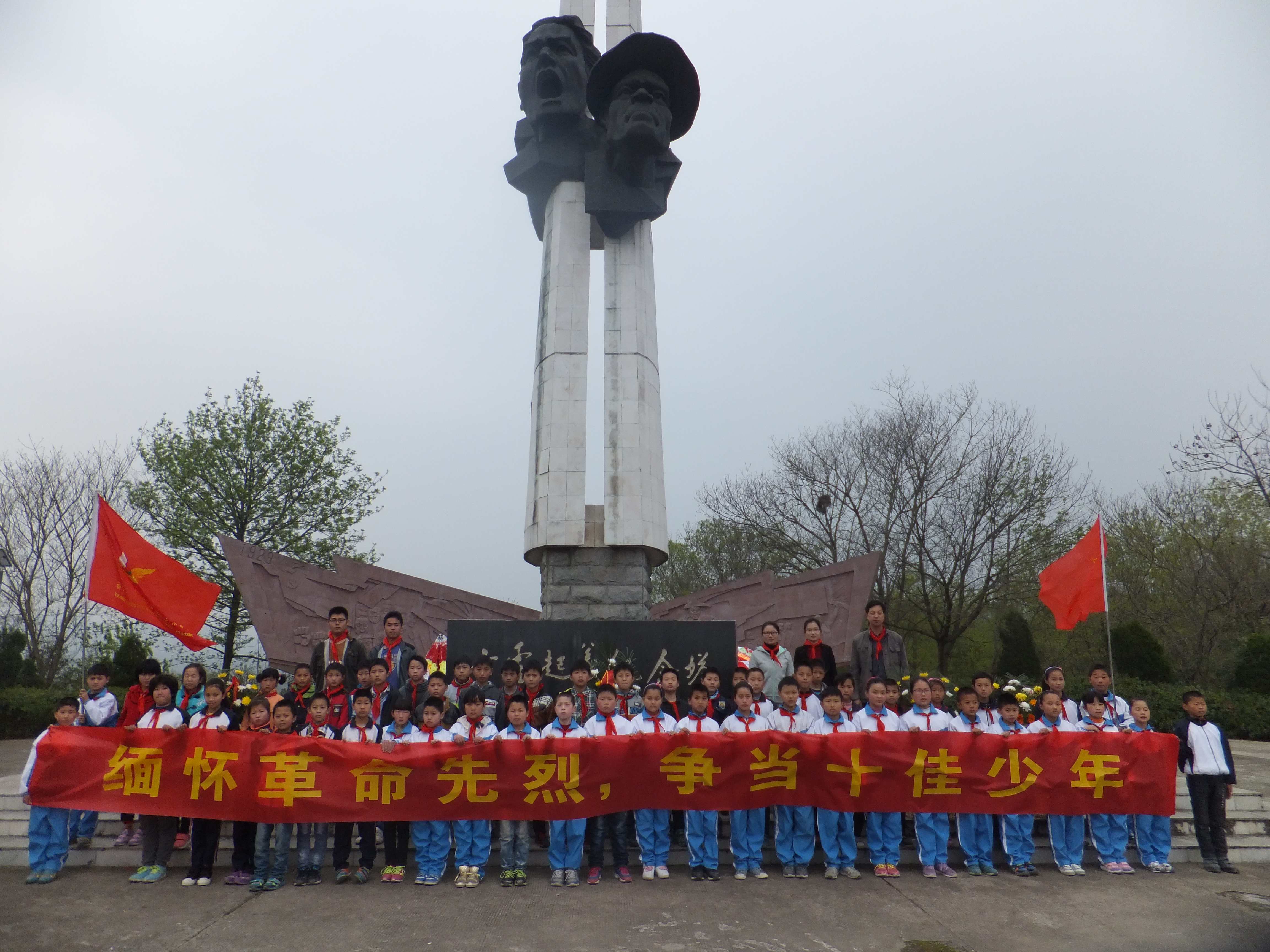 在清明节即将到来之际,4月3日下午,分路口小学部分少先队员在辅导员老师们的带领下来到全国闻名的“一镇十六将,独秀大别山”的独山镇开展了“缅怀革命先烈,争当十佳少年”主题教育活动。