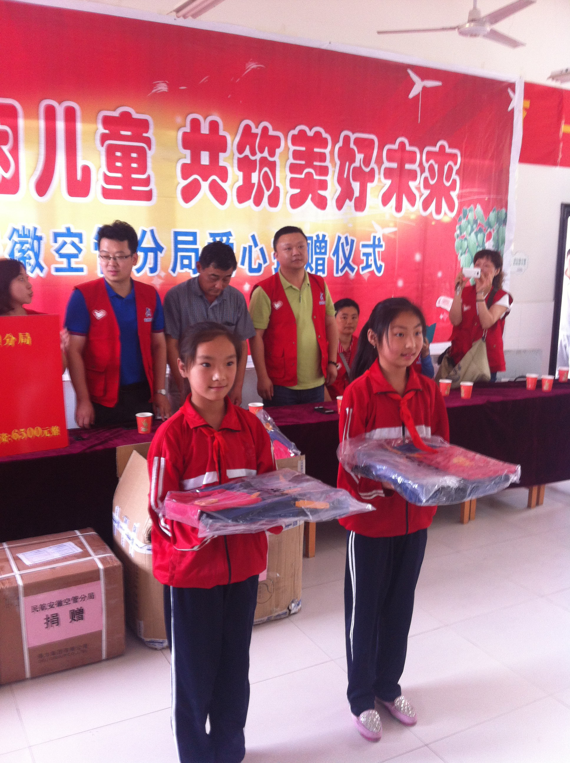 2015年5月22号上午,民航安徽空管局一行十几人,带着六一慰问品;带着资助贫困学生生活补助;带着给贫困学生的助学金,来到分路口镇新行小学,开展帮扶慰问活动。