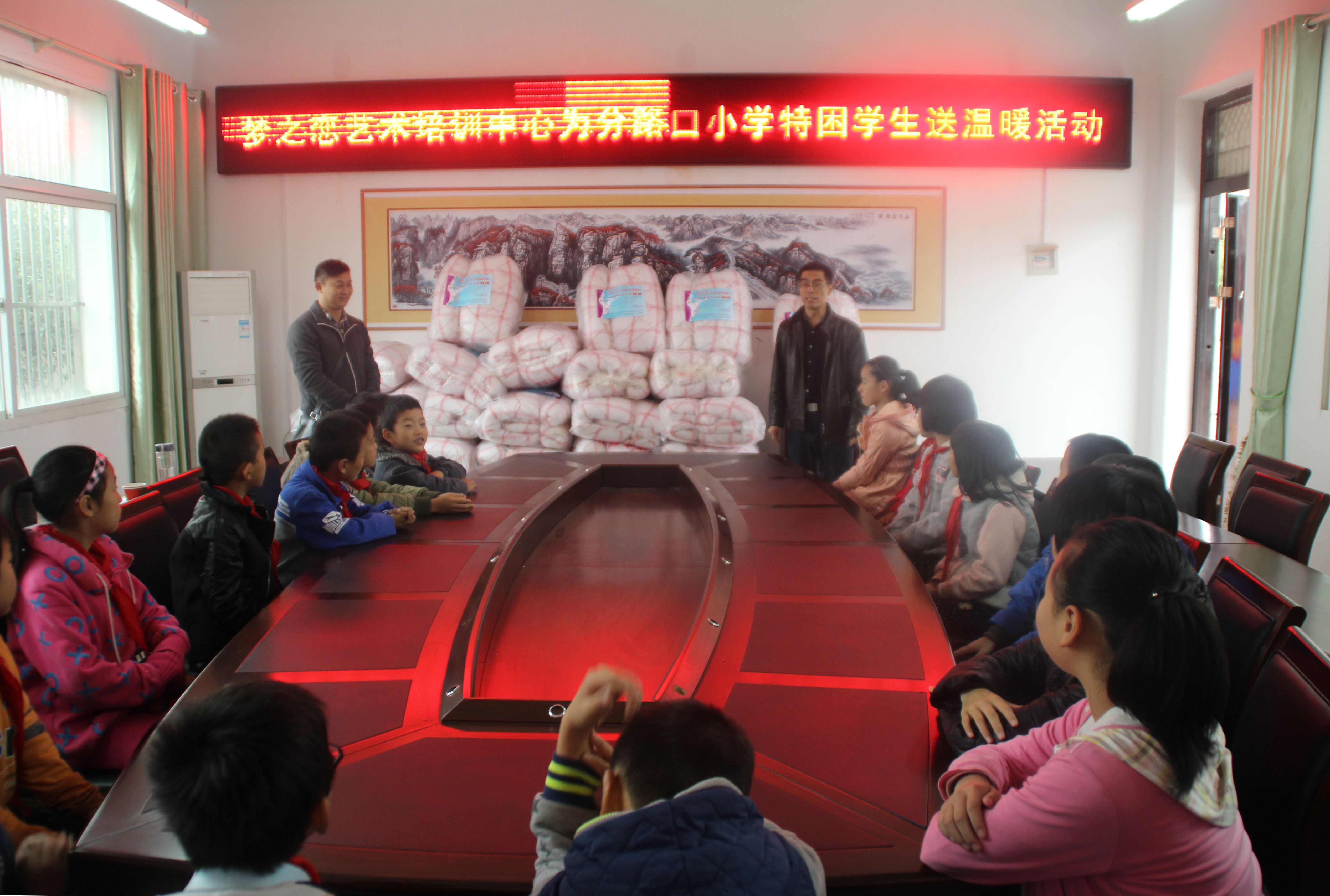 正值深秋,天气一天天的变冷,但分路口小学校园却洋溢爱的春天。10月24日上午,分路口小学携手梦之恋艺术培训中心在分路口镇中心学校会议室举行了一场简单而意义深远的捐赠活动。分路口小学校长翁维钰、教导处主任李迅以及一至六年级受捐助的20名特困学生参加了活动。