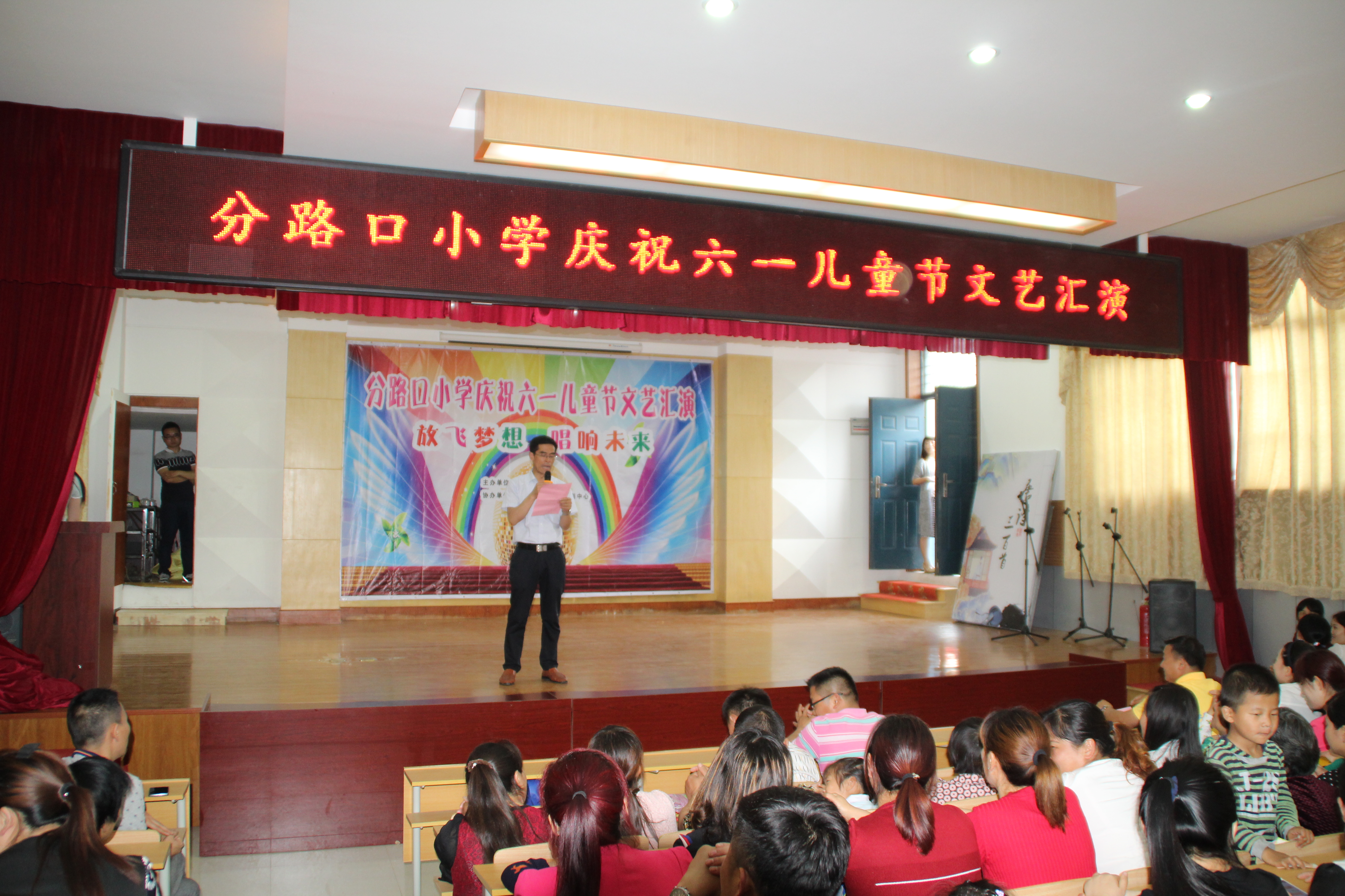 14时20分,文艺演出活动在分路口小学大礼堂拉开了帷幕。分路口小学校长翁维钰致开幕辞,他向各位家长表示了热烈的欢迎,向各位老师表示了衷心的感谢,向同学们表示了热烈的祝贺。他还勉励同学们在家庭里要做个好孩子,在学校里要做个好学生,在社会上要做个好公民。接着,分路口镇“梦之恋”文化艺术培训中心的负责人丁美兵先生上台致辞,他向孩子们致以节日的问候,还带来了100件衬衫送给部分留守儿童作为节日的礼物,并当场向家庭困难、品学兼优的周光辉同学捐赠了500元慰问金。
